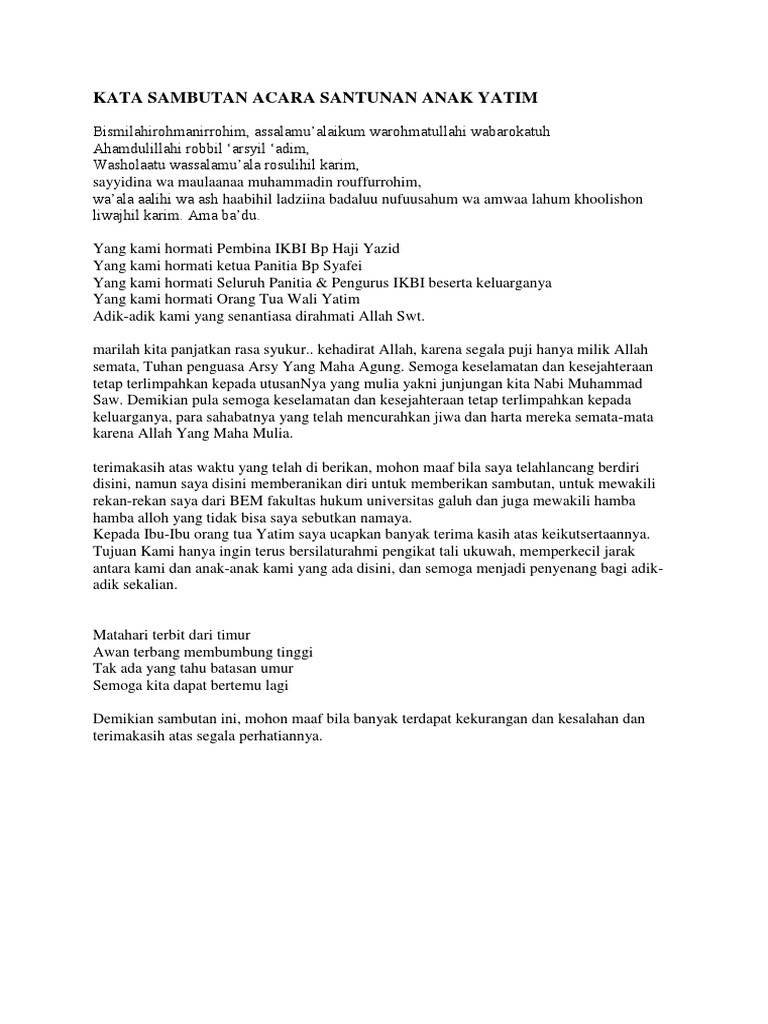 Anak yatim, foto santunan anak yatim, proposal kegiatan santunan anak yatim, sambutan panitia santunan dalam islam, yatim dan dhuafa, yatim dhuafa berbisnis, yatim donasi, yatim hadits, kisah yatim piatu, keutamaan yatim, kisah yatim piatu. Doa dan santunan anak yatim muslimat nu foto tirto id. Santunan dan buka puasa bersama anak yatim & dhuafa. Kita berikan santunan secara merata kepada seluruh anak yatim 2. Mendorong memberi makan fakir miskin.